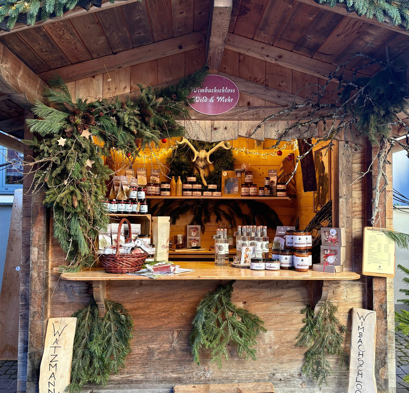 Wir sind noch bis 3.1.2026 am Berchtesgadener Christkindlmarkt mit unseren Wildschmankerln, Speck, Schnaps und Knödel!